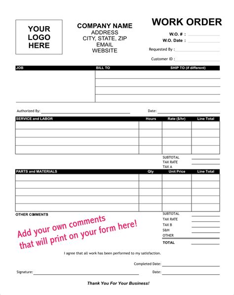 Work Order Form Templates at